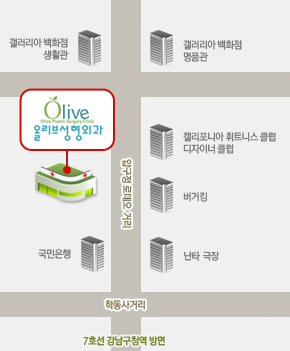 저희 올리브성형외과는 압구정 디자이너클럽 맞은편에 있으며